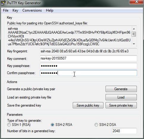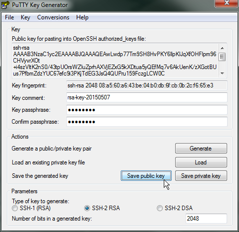 lastly i suggest you save a copy of both your public and private keys. the private one because you have to anyways, and the public one because when you close puttygen, you won't be able to retrieve it again. don't save the private key anywhere people could get ahold of it.
